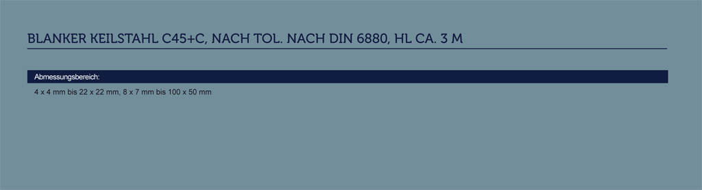 - Blanker Keilstahl C45+C, nach Tol. nach DIN 6880, HL ca. 3 m