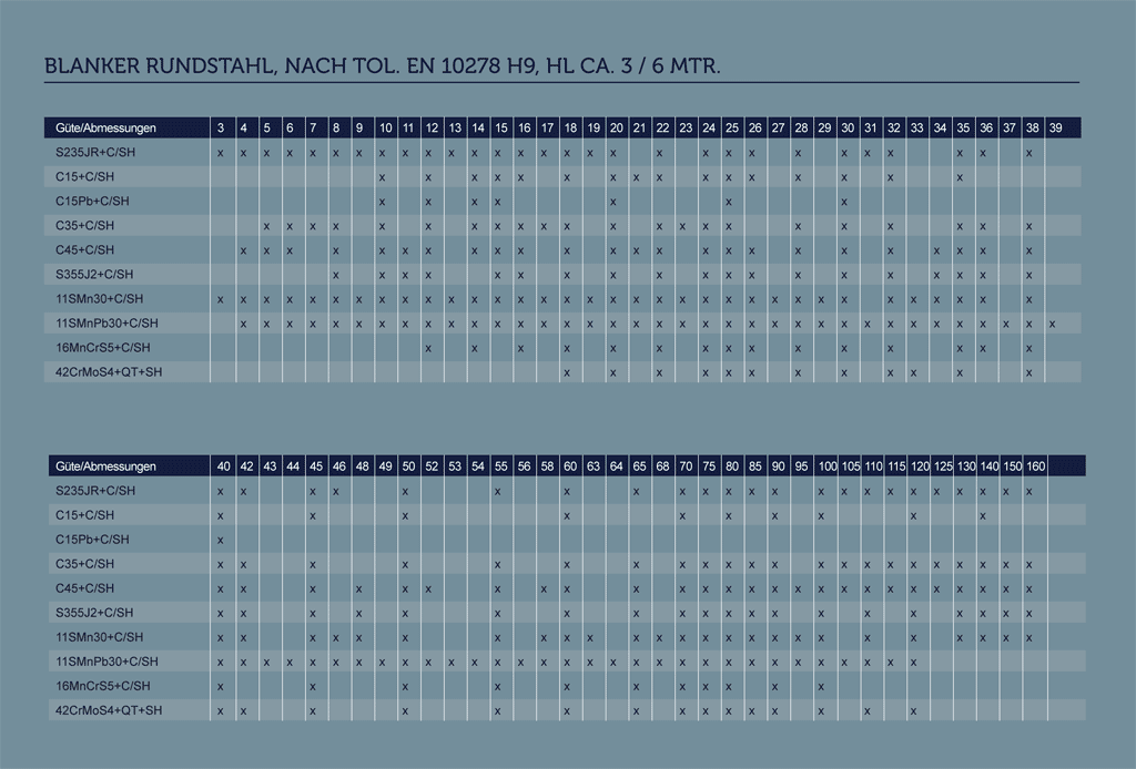 Zusätzlich zu unseren Rostfrei-Produkten liefern wir auch Blankstahl in verschiedenen Ausführungen: