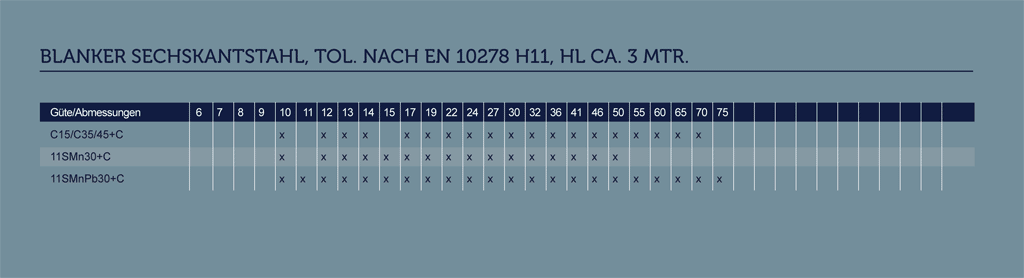 - Blanker Sechskantstahl, Tol. nach EN 10278 h11, HL ca. 3 mtr.